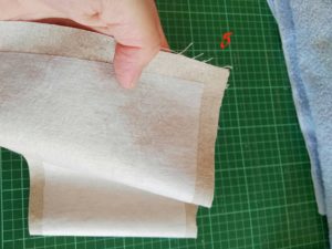Prendi il pezzo di stoffa dove ricamare il nome e stiralo, poi appoggia sul rovescio della stoffa la tela adesiva di rinforzo e passa il ferro senza vapore cosicché le due parti si incolleranno. Ricorda di mettere la parte con la colla a contatto del tessuto da rinforzare.
