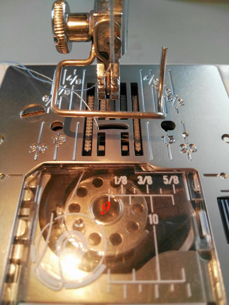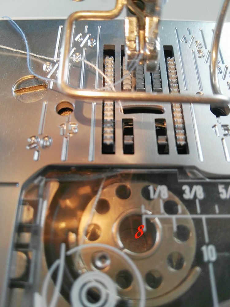 Passa ora alla macchina da cucire: faremo un ricamo a macchina a mano libera. Per prima cosa abbassa il trasporto della tua macchina da cucire (foto 8 trasporto su e foto 9 trasporto abbassato).