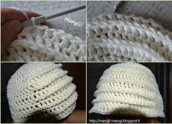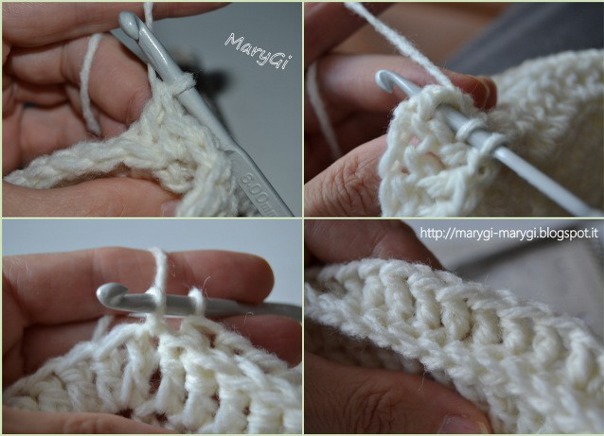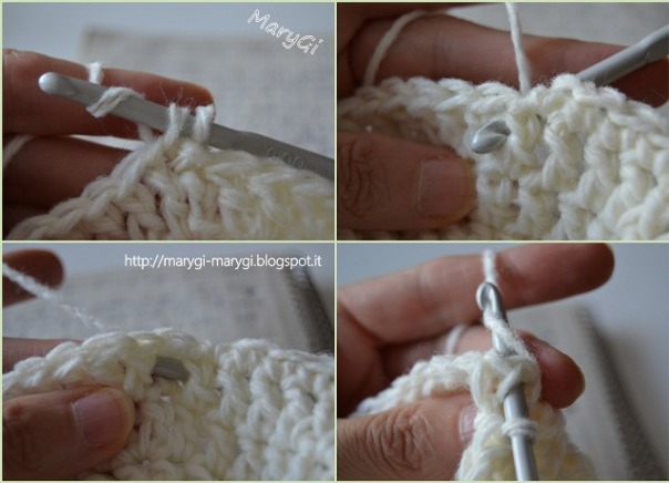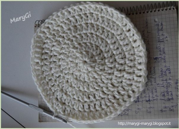 Ripetere 1 e 2 giro verticale per 5 o 6 volte fino ad avere l’altezza desiderata per il cappellino.
