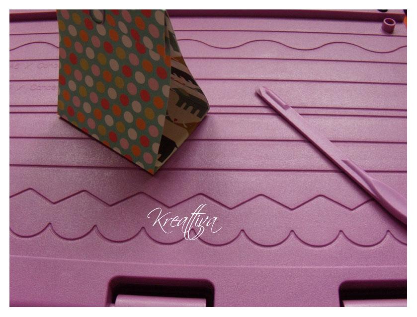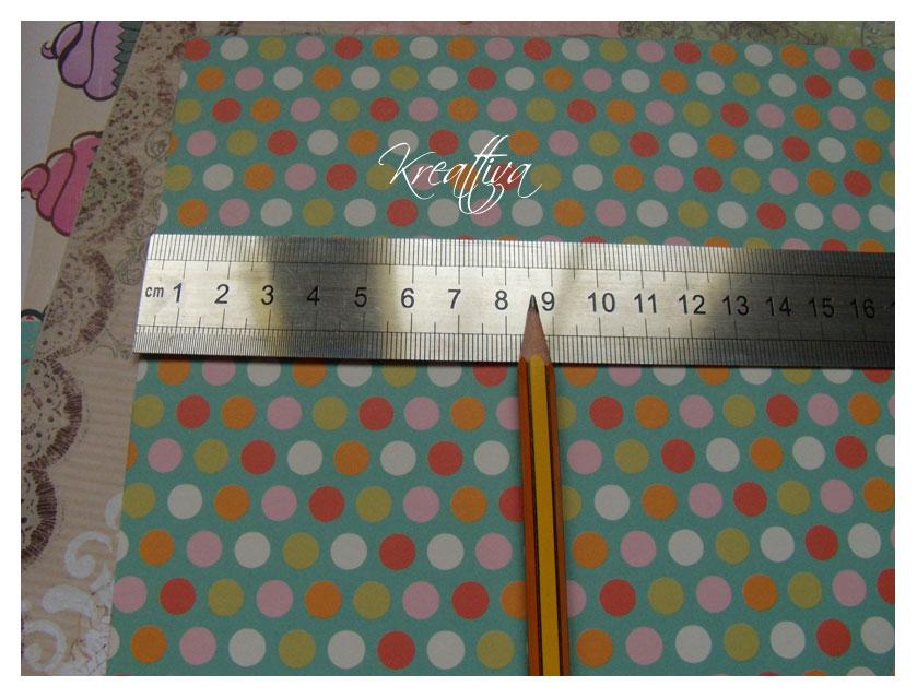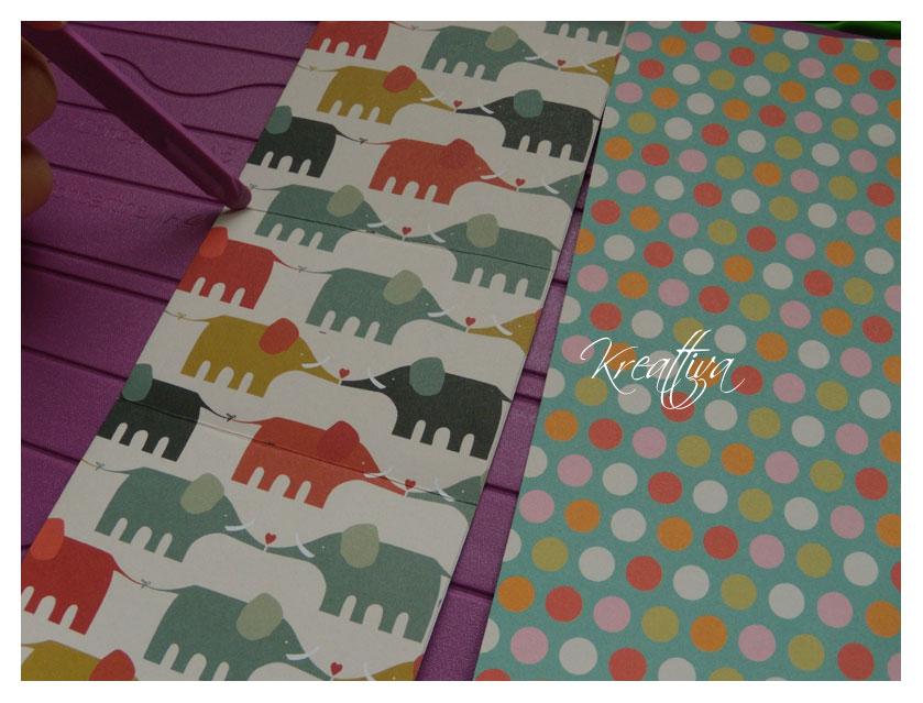 Per prima cosa create una striscia di cartoncino colorato, io ho usato uno per scrapbooking che è decorato da entrambi i lati ma potete usare anche del comunissimo cartoncino bristol