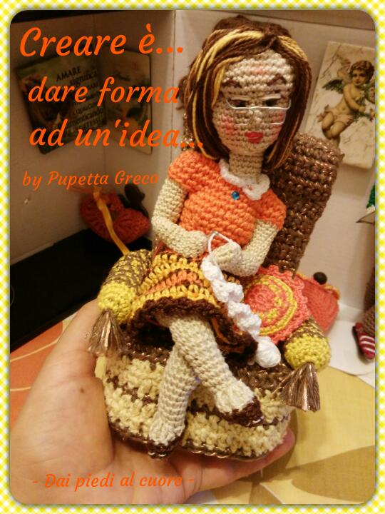 L’uncinetto è ritornato nella mia vita per colmare un vuoto. Quel vuoto che mi hanno lasciato i miei. In particolare dopo la malattia di mia madre, mi sono ritrovata circondata da un vuoto e un silenzio abissale nonostante avessi una famiglia da accudire e un lavoro che mi teneva impegnata fuori casa. Cosi senza una vera apparente ragione ho ripreso l’uncinetto e la sera, quando certi pensieri si fanno più insistenti, mi ritrovavo ad accoccolarmi nella poltrona appartenuta a mia madre. È stato in quelle sere che presi l’uncinetto perchè incuriosita da alcuni lavori tridimensionale che avevo visto in giro. Non sapevo ancora che quella tecnica si chiamasse “amigurumi”.