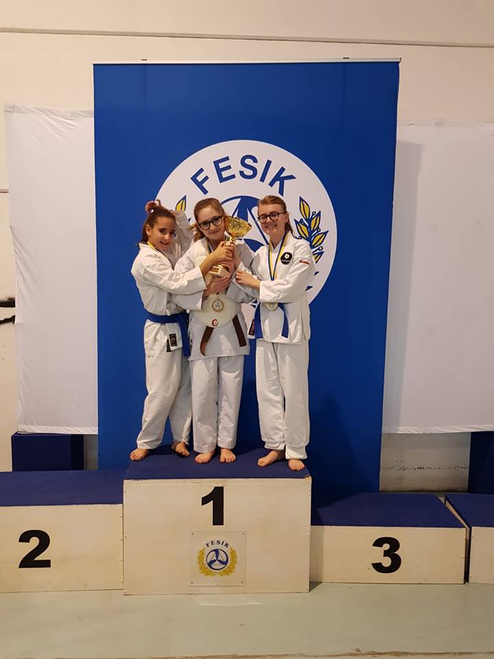 Nella categoria 9/10 anni ottimo l’esordio in gara dei piccoli Matteo De Paola e Christian De Filippis, quest’ultimo combatteva davvero bene, ma era meno fortunato del compagno che invece raggiungeva con grinta la vetta del podio. Il loro capitano di squadra Alessandro Di Stasio non era da meno, procedendo nella categoria superiore come un carrarmato fino alla vittoria. Tutti e tre a squadra vincevano l’oro. Nella categoria 11/12 anni Sara Sebastiani era da sola a difendere i colori della Sakura, ma il suo coraggio non si fermava davanti a niente. Nella categoria femminile 13/14 anni era una lotta tra le tre compagne medaglia d’oro nel team Alessia Mandatori, Marta Caiazzo e Maria Luiza Ignatescu. Nell’individuale la