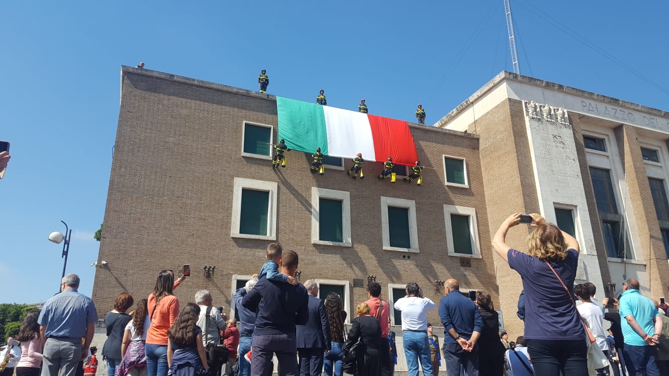 Dopo la cerimonia dell’alzabandiera proprio questi ultimi hanno poi dispiegato la bandiera tricolore sulla facciata del palazzo della prefettura, mentre la banda Gioacchino Rossini di Latina suonava l’Inno d’Italia.