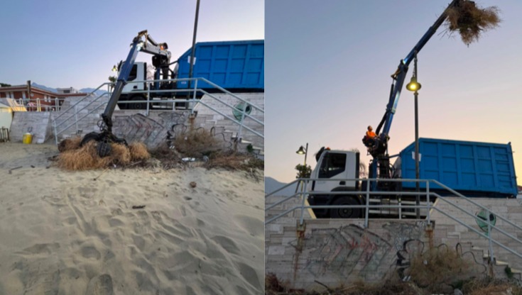 L’intervento si articola in più fasi. Il primo passaggio è il taglio dell’erba, fondamentale per operare in sicurezza ed evitare rischi legati alla presenza di siringhe, rifiuti pericolosi o fauna problematica. Tale attività serve anche a garantire l’accesso in sicurezza agli arenili. Si prosegue con un’analisi puntuale dei materiali abbandonati, per capire come rimuoverli e smaltirli nel modo corretto. Poi si passa alla raccolta manuale, con rastrelli e operatori specializzati, fino alla pulizia in profondità, affidata a mezzi gommati non impattanti. Il carico finale avviene a mano o con il ragno, sempre nel rispetto delle regole della raccolta differenziata.