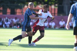 Prima sgambata stagionale di “lusso” per il Latina che ieri a Trigoria è stato ricevuto dalla Roma di De Rossi. I nerazzurri di mister Padalino, al lavoro da soli tre giorni, hanno comunque fatto vedere buone cose, andando in vantaggio con il bellissimo gol di Capanni, assistito da Ercolano. Poi naturalmente è venuta fuori la classe dei giallorossi, a segno sei volte tra le quali la griffe di Paolo Dybala.