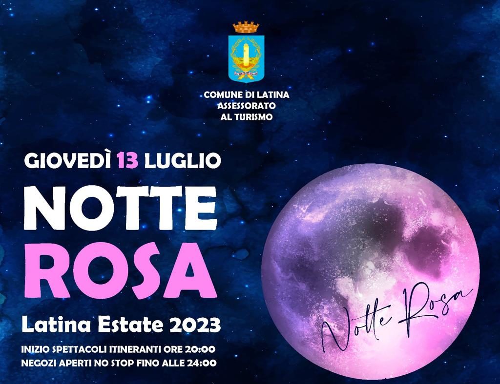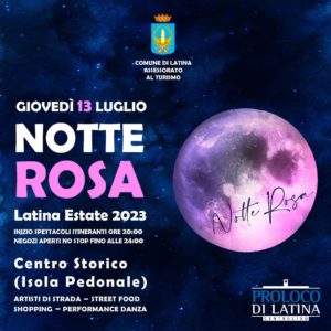A Latina giovedì 13 luglio, in pieno centro ci sarà la “Notte rosa” con artisti di strada, spettacoli di danza e street food, ed è il primo evento messo in campo dall’assessorato al Turismo per la stagione estiva 2023. L’iniziativa, organizzata in collaborazione con l’associazione ProLoco di Latina Centro e Lido, ha lo scopo di rendere più attrattiva l’isola pedonale con momenti di intrattenimento per grandi e bambini e per rendere più piacevole lo shopping presso le attività commerciali che resteranno aperte, oltre il consueto orario, dalle 20 fino a mezzanotte.