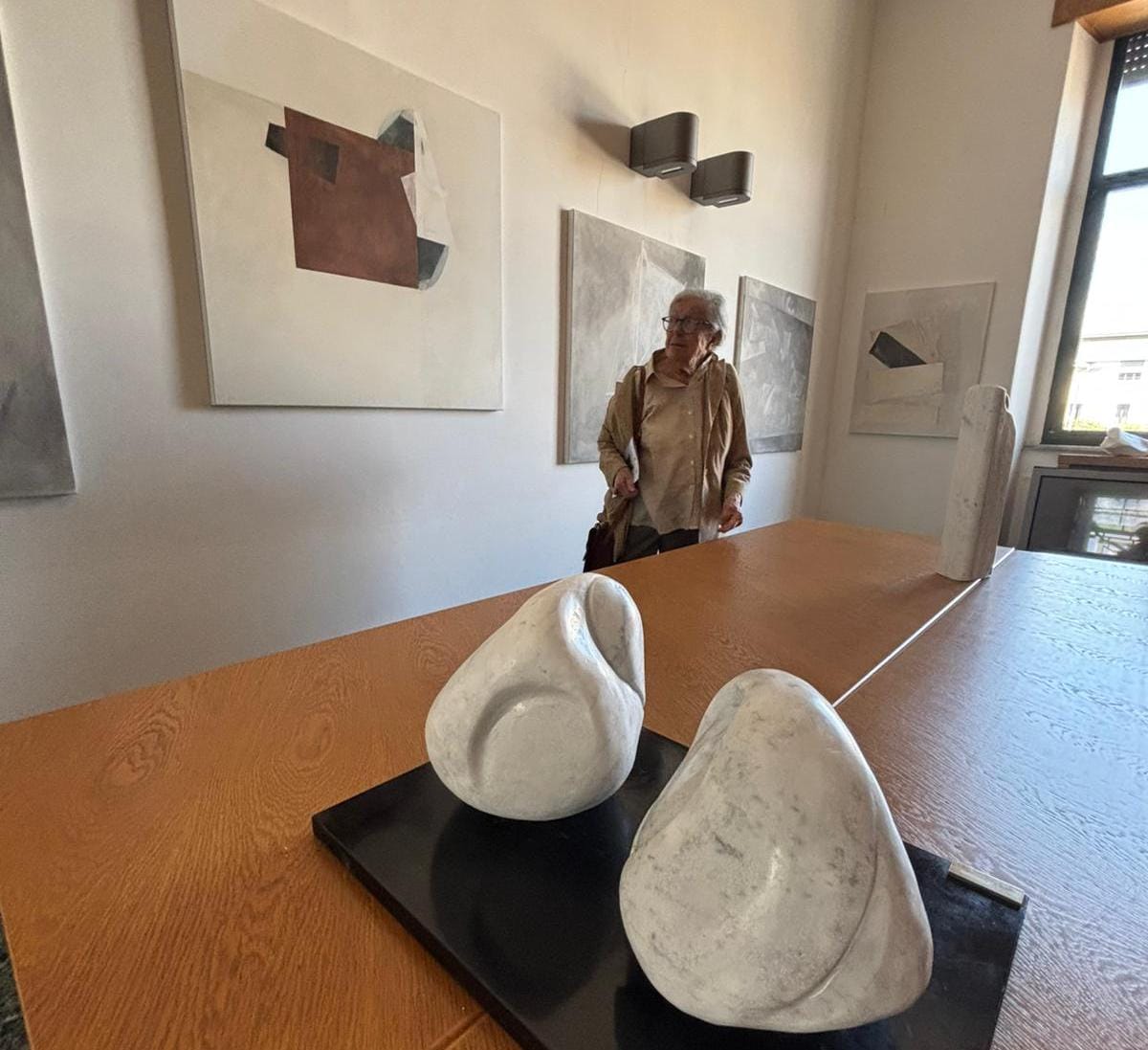 Bianco luminoso, forme pure, segni essenziali: l’arte di Emilia Isabella si muove tra pittura e scultura, evocando ritmi interiori e silenzi carichi di significato. Le sue sculture in marmo, travertino e pietra lavica sono strutture meditative che uniscono rigore formale e tensione spirituale.