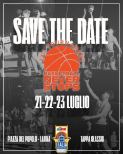 Con la fine del Trofeo Città di Latina – Basket in Piazza, da oggi pomeriggio la palla a spicchi sarà ancora protagonista per altri 3 giorni con Basketball Never Stops. Si gioca il 21/22/23 luglio, sempre in Piazza del Popolo, nella BIP Arena.
