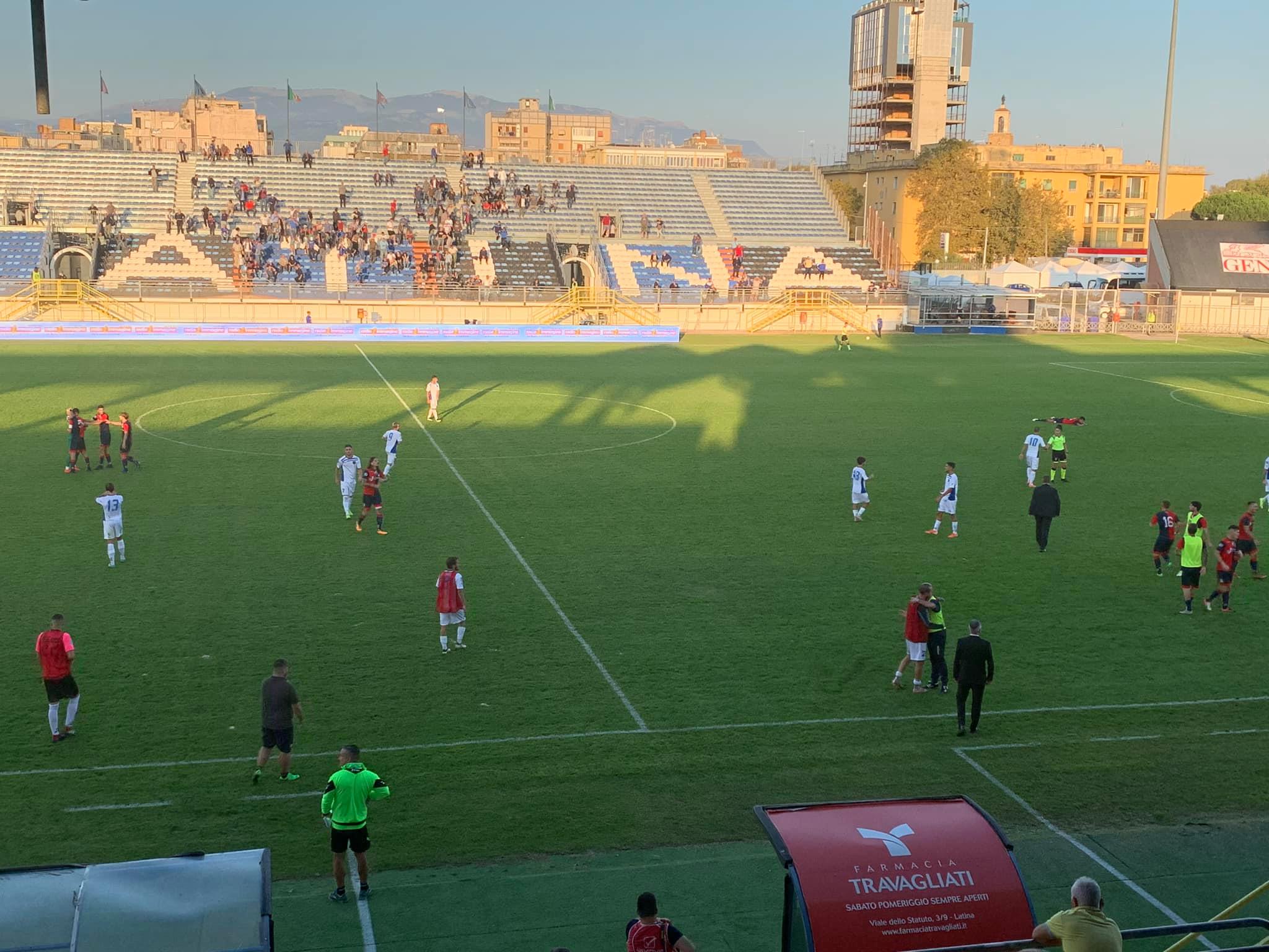 Nel secondo tempo Cunzi ha due volte la possibilità di gonfiare la rete avversaria ma sciupa malamente. Al minuto 75 Maurizi inserisce Cardella e Choutil per Sanseverino e Fontana, e dopo due giri di lancetta, lascia spazio anche a Barberini sostituendo Esposito. Ma i quattro cambi nel finale non sortiscono gli effetti sperati e arriva la rete beffa di Milani che condanna il Latina alla terza sconfitta in questo campionato.