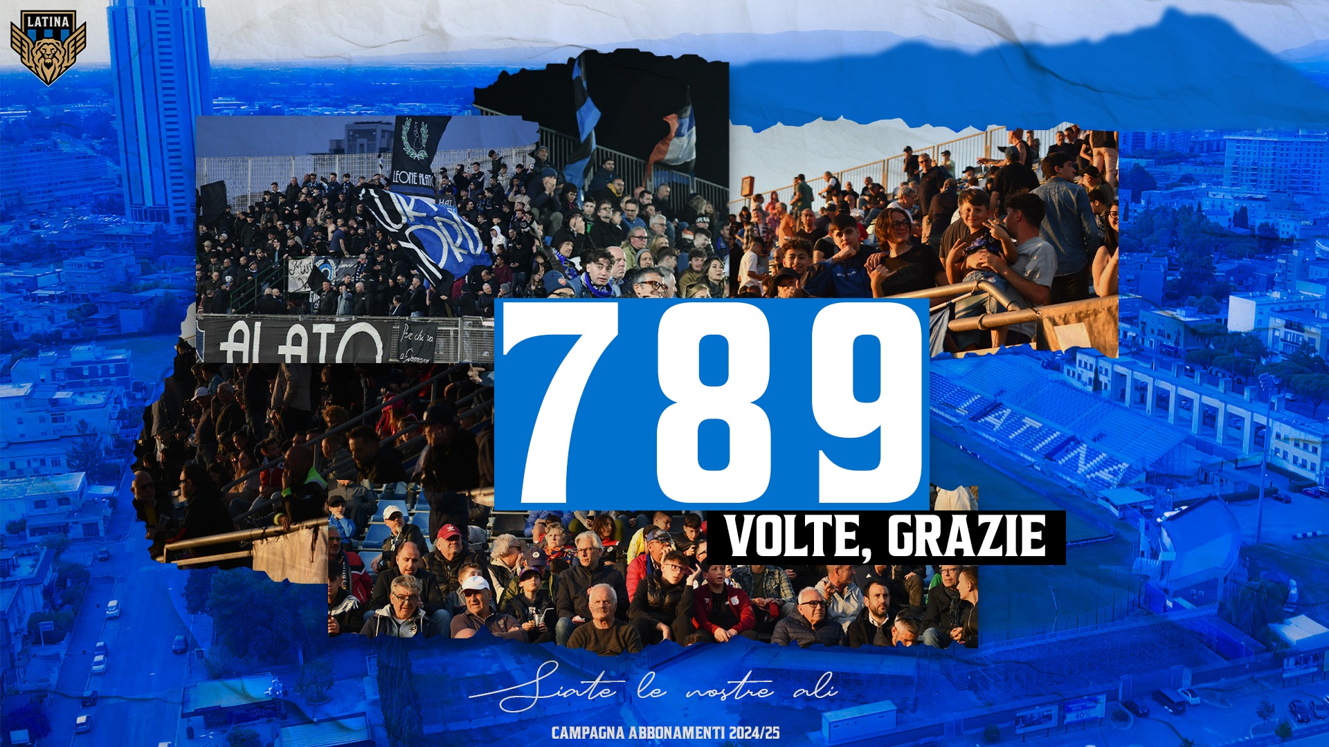 il nostro più sincero ringraziamento va soprattutto a chi c’è sempre stato: ai tifosi storici e a tutti coloro che, ogni anno, continuano a sostenere il Latina con immutata passione. Grazie.