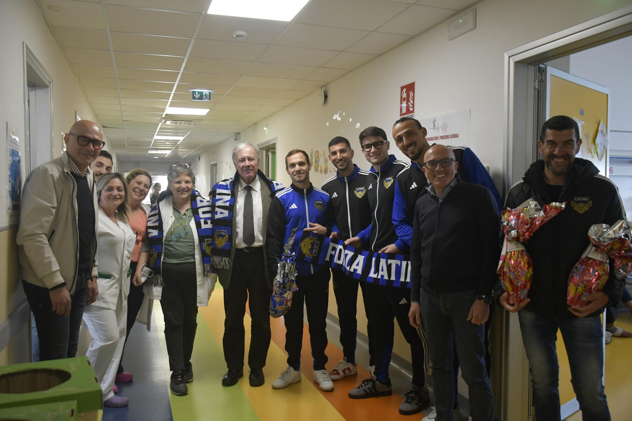 Una delegazione del Latina Calcio 1932, insieme ai rappresentanti dell’associazione Alessia e i Suoi Angeli, ha fatto visita questo pomeriggio ai reparti pediatrici dell’Ospedale “Santa Maria Goretti” di Latina, per portare un sorriso e un momento di gioia ai piccoli pazienti ricoverati. Guidata da alcuni rappresentanti del personale sanitario, il gruppo ha donato uova di Pasqua solidali, fornite proprio dall’associazione, insieme a gadget ufficiali della squadra. Un gesto simbolico ma dal forte valore umano e sociale, che conferma ancora una volta la vicinanza del club nerazzurro alla propria comunità e la volontà di promuovere iniziative di solidarietà e inclusione, soprattutto a sostegno dei più piccoli. Un pensiero condiviso da tutto il Latina Calcio 1932, che ringrazia l’associazione Alessia e i Suoi Angeli per l’impegno e la collaborazione in questo importante momento.
