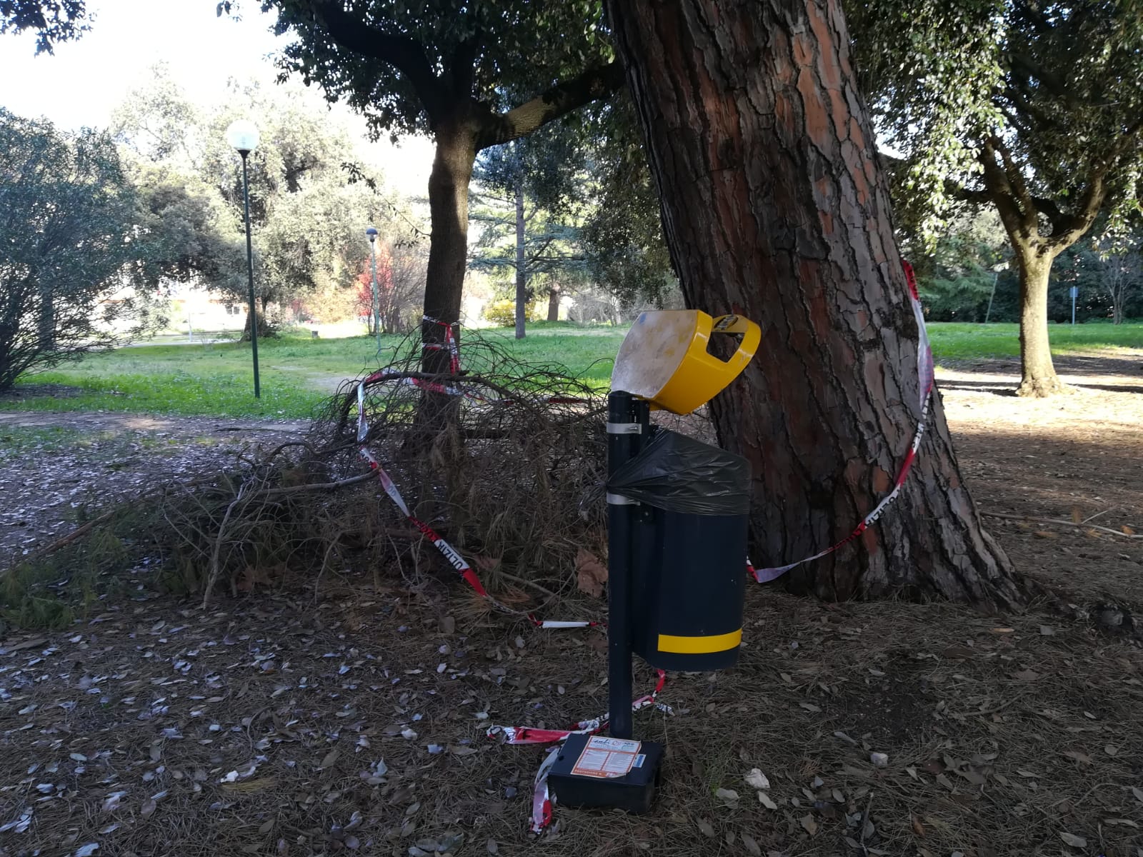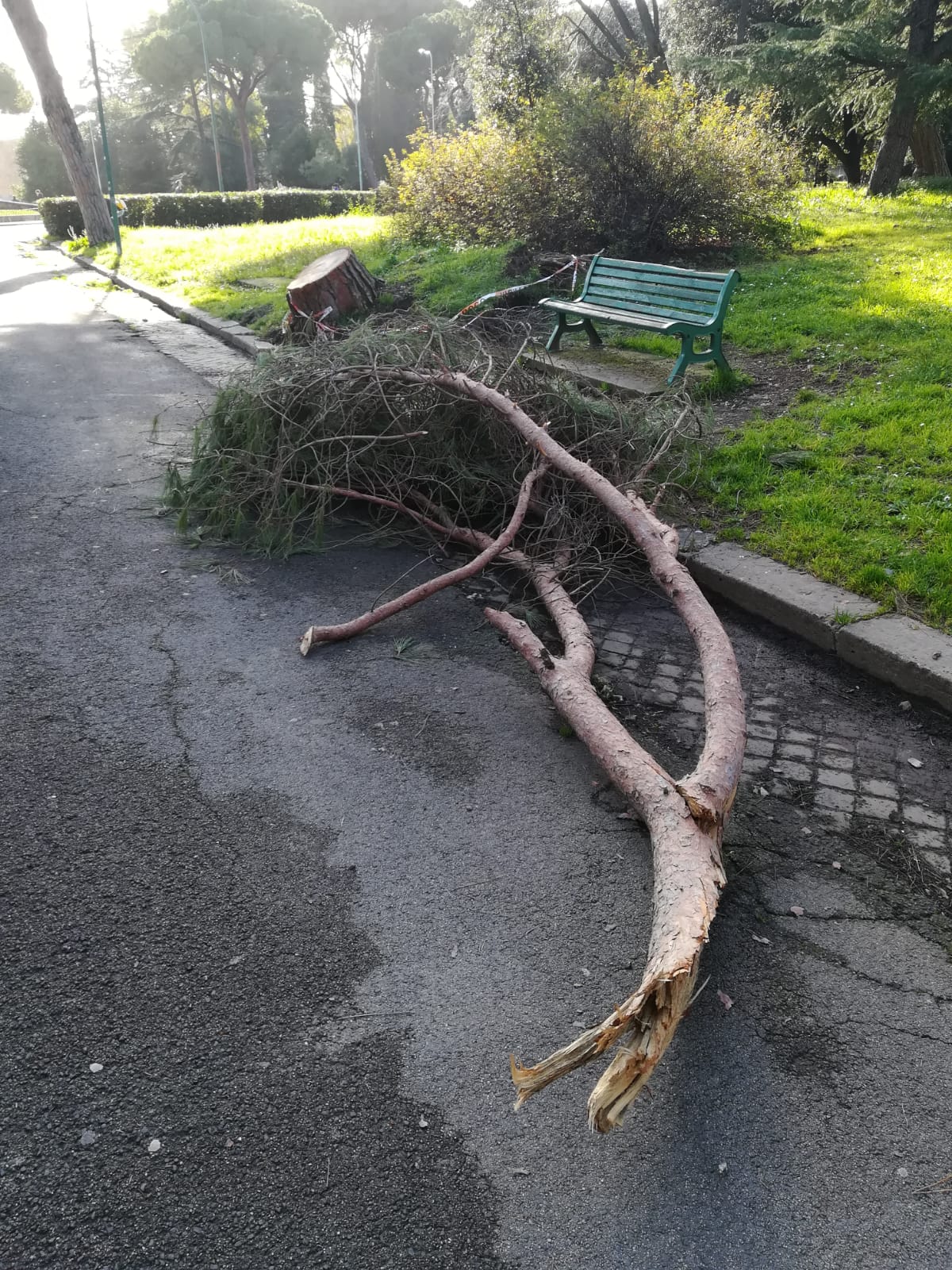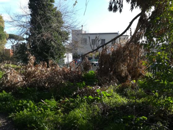 Il dossier fotografico di CasaPound mostra rami caduti o pendenti, erba alta, i sentieri del percorso “salute” impraticabili.