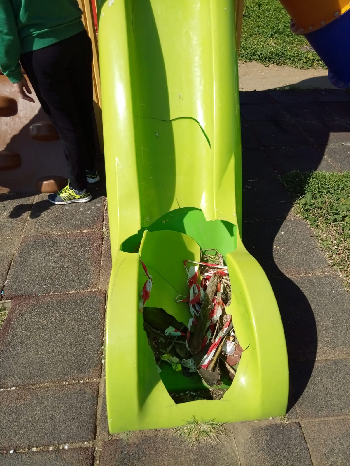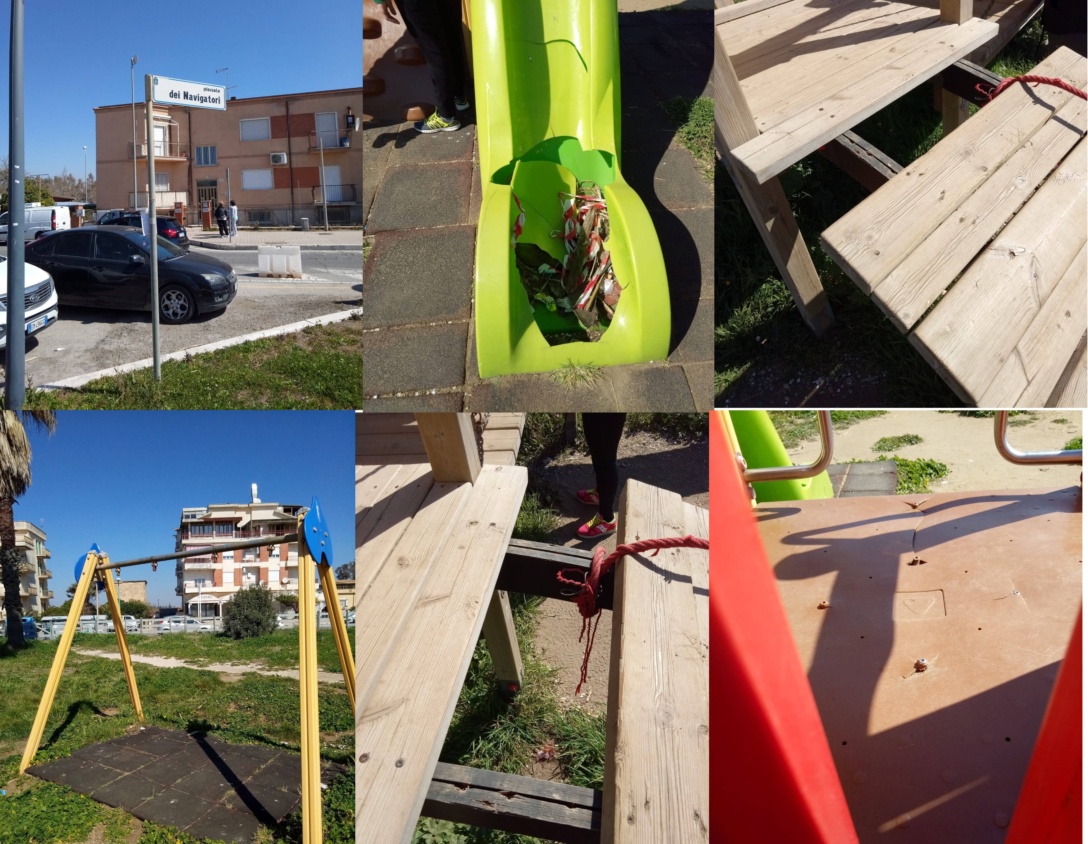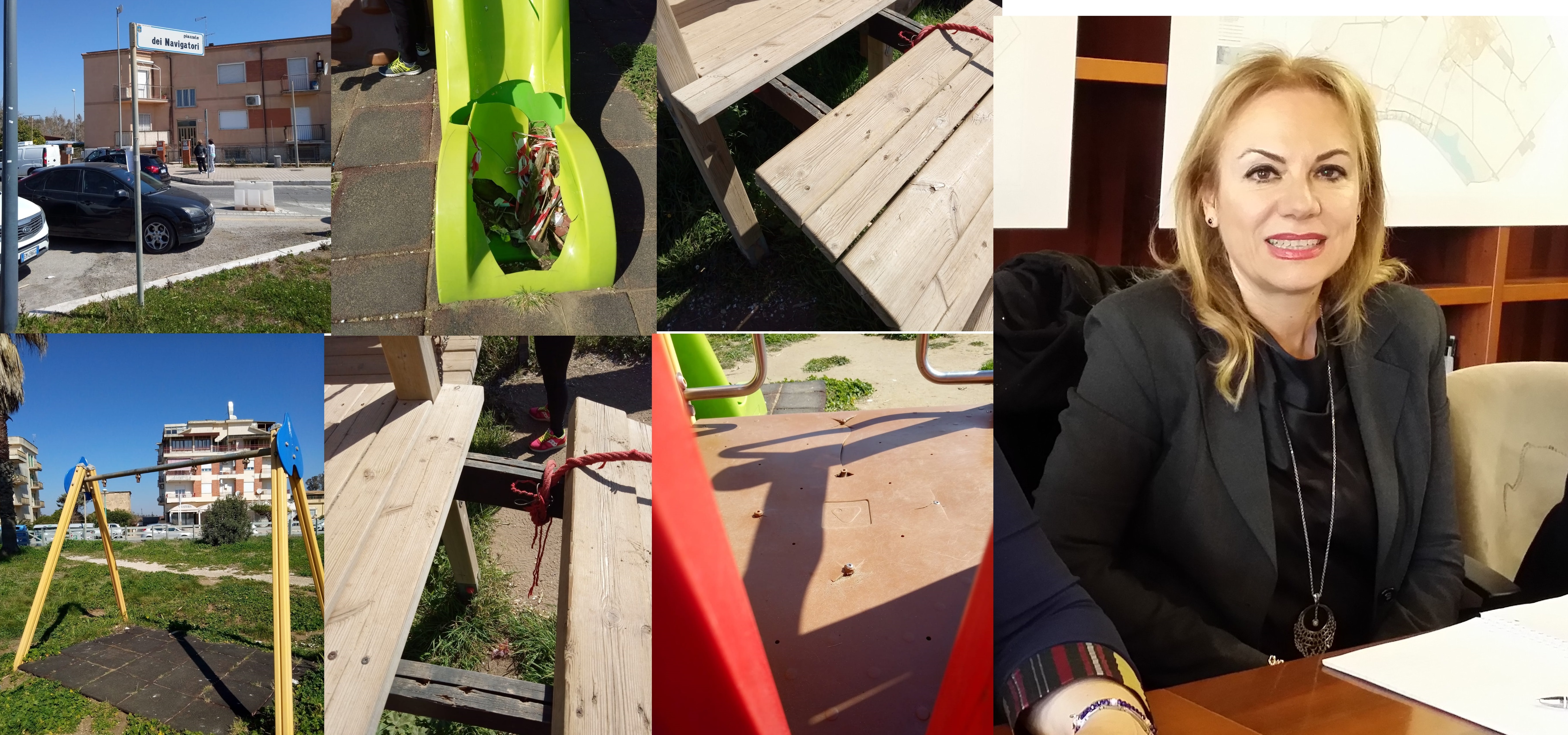 La consigliera di Fratelli d’Italia fa sua la segnalazione di alcuni genitori che attraverso fotografie le hanno rappresentato lo stato delle attrezzature per l’infanzia: scivoli sfondati, tavole di legno divelte, altalene inutilizzabili.