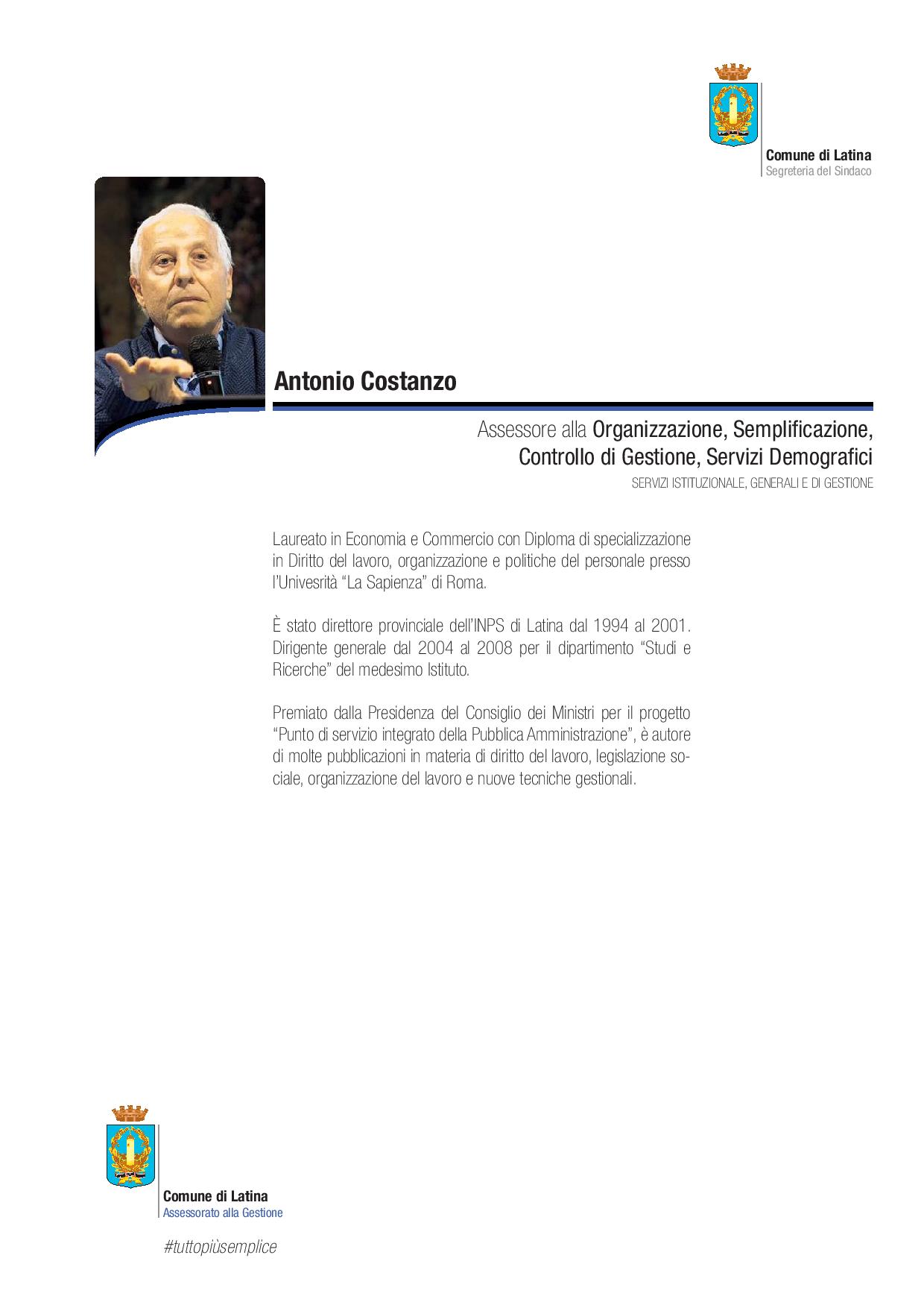 LA SQUADRA Eccola allora la squadra del sindaco, fatta pescando un po’ qua e po’ là in quella società civile che ha fatto da straordinario serbatoio lungo la corsa elettorale. Ci sono alcuni personaggi noti (l’ambientalista Lessio su tutti: fu autore di un articolo pubblicato dal Manifesto sul cuore nero di Littoria, parlando di politica e pallone, e alcuni supporters nerazzurri lo contestarono ferocemente con uno striscione affisso fuori dallo stadio), alcuni meno. Qualcuno discusso per via di esperienze chiacchierate presso altre amministrazioni (Buttarelli), altri palesemente trascinati nell’esecutivo a furor di popolo perché protagonisti da sempre di Rinascita Civile (Costanzo, Briganti, Di Muro), l’associazione che per anni ha sostituito il Comune nella promozione della cultura. E comunque, complessivamente, si tratta di una autentica rivoluzione di facce e biografie, l’indispensabile premessa per mettere in pratica quella auspicata inversione di tendenza nell’amministrazione della cosa pubblica locale. Nel dettaglio: