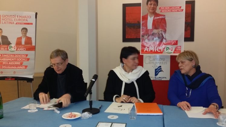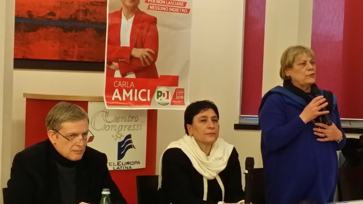 Gianni Cuperlo a Latina per scoraggiare il voto di destra. Non è candidato alle politiche del 4 marzo, come Sesa Amici, sottosegretario alla Presidenza del consiglio dei ministri da cinque anni e tre governi, che siede al suo fianco nella sala dell’hotel Europa. Sono lì, da esponenti del Partito democratico, a sostenere la candidatura di Carla Amici (sorella di Sesa) al Consiglio regionale del Lazio nel collegio della provincia di Latina. La sala è piena, stracolma di tante persone testimoni delle tappe del tour elettorale che Carla Amici ha intrapreso nei diversi centri della provincia di Latina, da nord a sud. Un viaggio partito da Roccagorga e che, sosta dopo sosta, ha suscitato un crescente interesse verso quella politica che tende la mano agli ultimi: azzerare le disuguaglianze sociali, con la forza del fare, per non lasciare nessuno indietro.