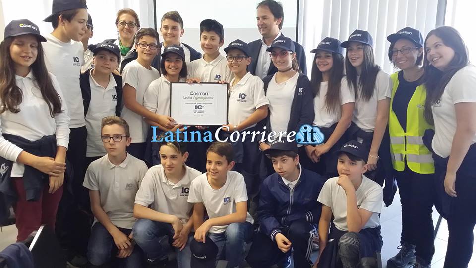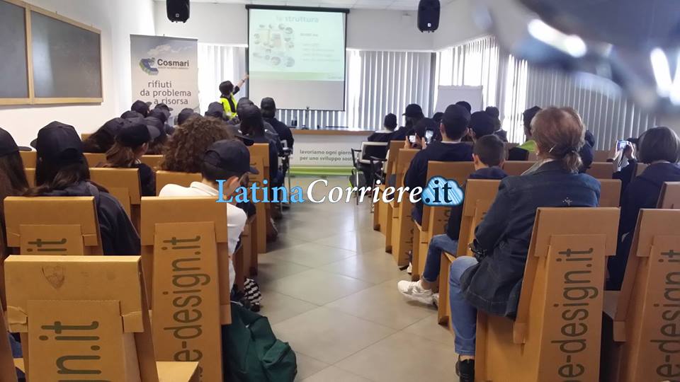 Cappellino Cosmari in testa e tanta voglia di apprendere, gli studenti dopo il tour sono tornati nella sala ludoteca – ambiente dedicato dal 2009 all’interattenimento dei bambini del personale – per acquisire l’attestato di partecipazione all’iniziativa “Latina Differenziamoci” per la salvaguardia ambientale organizzata con il patrocinio di Prefettura, Comune e Provincia di Latina, Consorzi di recupero dei materiali e Ordine dei Chimici. La campagna informativa e formativa ha coinvolto finora, oltre all’istituto Don Milani, anche altre scuola di Latina: via Tasso; piazza Moro, via degli Aurunci, Borgo Bainsizza, Borgo Santa Maria, via Quarto, via Amaseno, Leonardo da Vinci, Borgo Sabotino, liceo artistico, Giuseppe Giuliano e istituto Marconi, per un totale di cinquemila studenti di vari ordini e gradi.