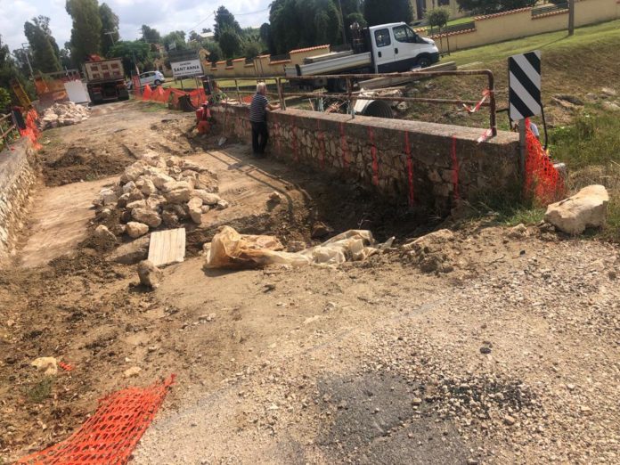«Nonostante l’imprevista interruzione a causa del ritrovamento di ordigni bellici, i lavori sono stati ripresi appena possibile. È stato consolidato il solaio esistente con una nuova gettata di cemento armato e tiranti in acciaio fissati sulle spallette del ponte, è stata effettuata la pulizia del letto del fosso in corrispondenza del ponte e ridefiniti e consolidati gli argini con blocchi di pietra gabbionata, sono state realizzate nuove canalizzazioni laterali di raccolta delle acque per farle confluire nell’alveo principale ed è stata riasfaltata la pavimentazione del ponte e dei tratti che lo precedono in entrambe le direzioni.