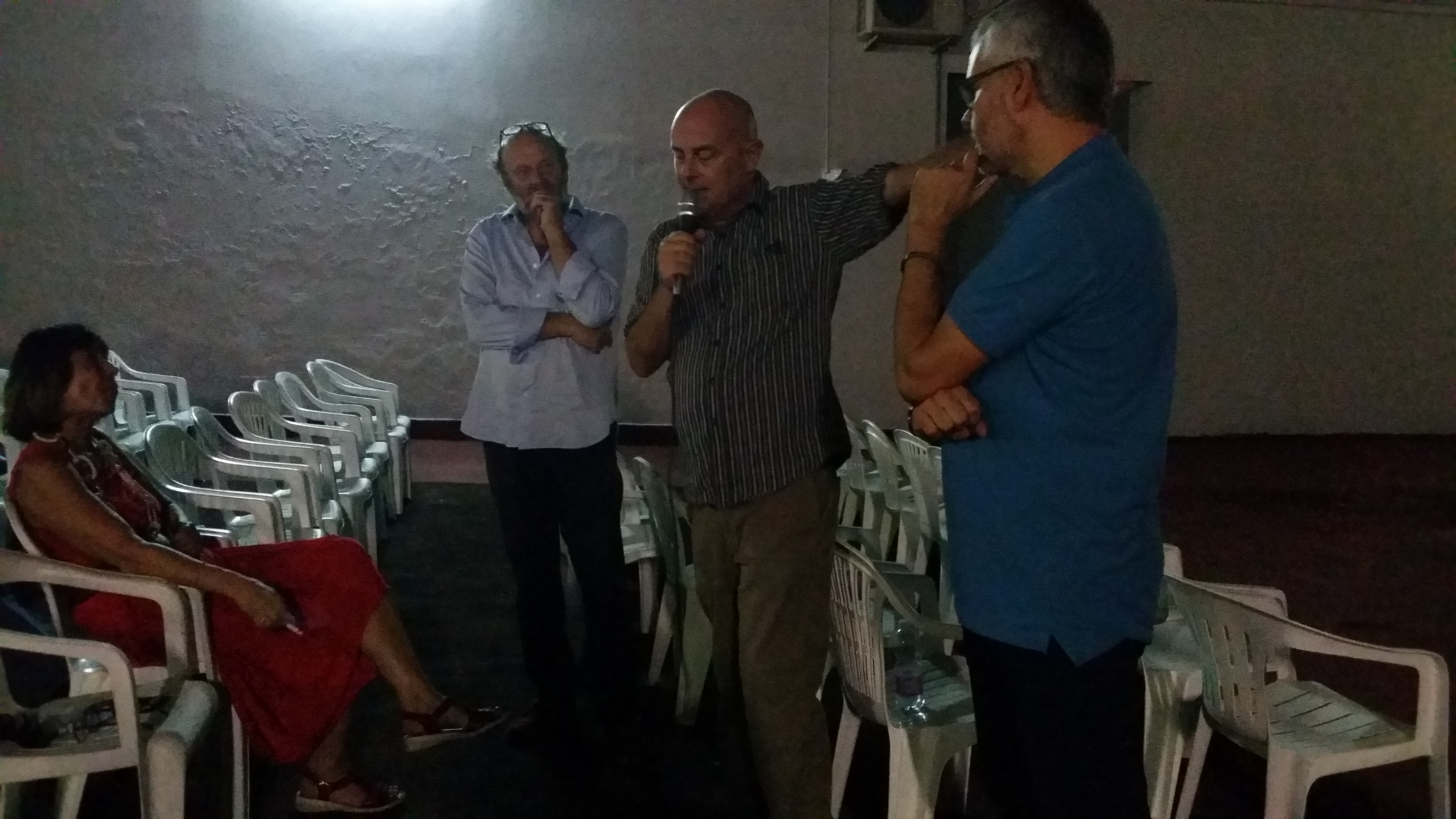 Ieri sera la proiezione di “Scorie in libertà”, secondo film di Pannone dopo “Latina Littoria” inserito nella rassegna “Latina sotto le stelle”, è stato preceduto dalla presentazione del libro “La trappola del fuorigioco” di Carlo Miccio. Ad introdurre film e libro il giornalista Marco Cusumano. Il romanzo di Miccio narra l’evoluzione familiare del protagonista tra diatribe politiche, psicologiche e calcistiche. Non un libro su Latina ma ambientato a Latina, in diversi luoghi della città che in un arco temporale di quarantanni si trasformano velocemente rendendo “inattuali” le citazioni precedenti. E’ il caso dei giardinetti – ha spiegato l’autore – citati nelle ultime pagine: “‘Ci avviammo ai giardinetti, che ancora non si chiamavano Parco Mussolini’. Questo nel 1975 raccontato nel libro uscito nell’aprile del 2017. Solo dopo pochi mesi i giardinetti cambiavano nuovamente nome: ‘Parco Falcone Borsellino'”. E allora non stupirà il lettore se nelle pagine di Miccio ci si potrà ritrovare alla Standa perduta o al campetto di calcio dietro ai palazzi Barletta.
