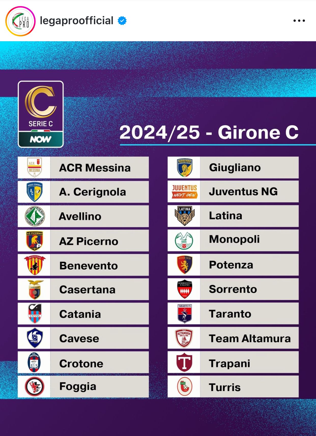 Sono stati diramati dalla Lega i tre gironi per quello che sarà il nuovo campionato di Serie C. Per il Latina sarà sempre girone C con la grande novità dell’inserimento della Juventus Next Gen. Si era parlato prima di ‘Milan Futuro’ poi di Atalanta U23, ma alla fine nel girone dei pontini è finita la squadra piemontese.
