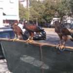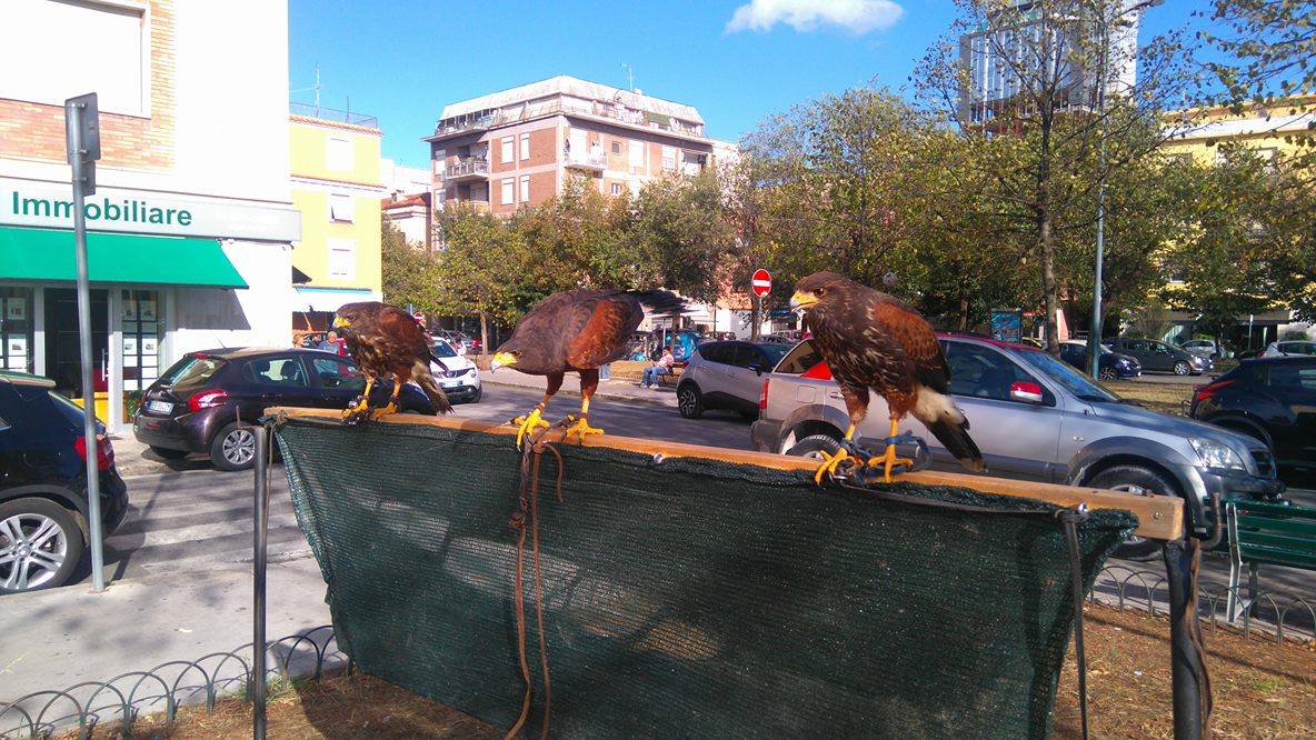 E’ partita oggi in piazzale Prampolini la terapia d’urto contro gli storni che popolano diverse zone del centro abitato di Latina. Quattro falchi tra esemplari del Texas e pellegrini, addestrati dal falconiere Emilio Maltalenti, sono stati lanciati in cielo per allontanare migliaia di volatili. “E’ il primo intervento d’urto – spiegano dall’ente di piazza del Popolo – del piano d’azione deciso dal Comune di Latina per fare fronte ai problemi di natura igienico-sanitaria e ai relativi disagi per la cittadinanza legati alla folta presenza di storni e al guano prodotto dagli stessi. Il servizio di allontanamento degli storni è stato affidato all’associazione sportiva dilettantistica Falconieri dell’area Mediterranea per 7.500 euro, a seguito di un avviso pubblico che ha comportato il confronto anche con un’altra tecnica (il grido di angoscia) che però è risultata più costosa e meno efficace. Nei giorni scorsi, attraverso una serie di sopralluoghi, sono state monitorate le aree intorno al centro urbano per accertare la presenza ed entità degli storni o eventuali cambiamenti nelle loro abitudini di stanziamento. Il piano prevede tre interventi a settimana nelle zone individuate come più problematiche, fino al prossimo 30 novembre: periodo nel quale dovrebbe subentrare la migrazione dei volatili”.