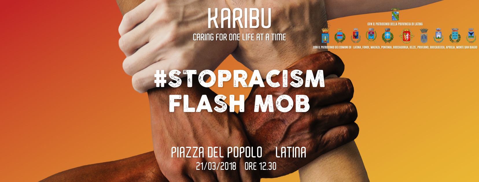 Andrà in scena domani, mercoledì 21 marzo, alle 12.30 in piazza del Popolo a Latina il flash mob #stopracism organizzato dalla cooperativa Karibu in occasione della Giornata internazionale contro il razzismo. Un sit-in di cinque minuti per richiamare l’attenzione ai principi della rivoluzione di Nelson Mandela.