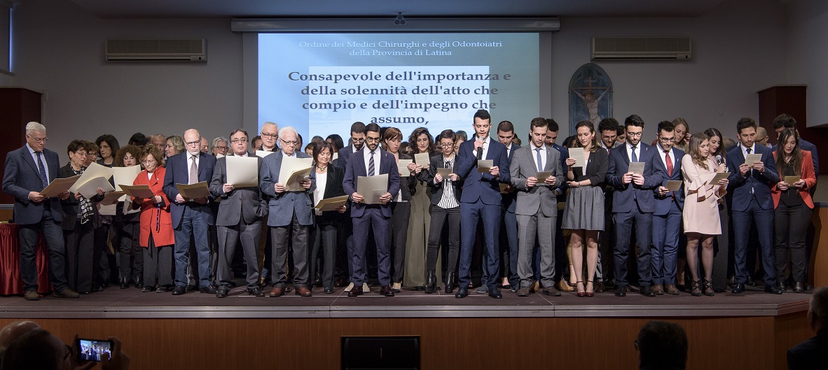 Anche quest’anno i giovani medici ed odontoiatri della provincia di Latina giureranno tutti insieme, sabato 17 marzo alle 10.00 nella sala San Marco della Curia Vescovile in Piazza Paolo VI. L’annuale cerimonia, organizzata dall’Ordine provinciale dei Medici Chirurghi e degli Odontoiatri di Latina presieduto dal dott. Giovanni Maria Righetti, è dedicata ai neo iscritti della provincia con lo scopo di far incontrare i medici che operano nel territorio da più di 40 – 50 e 60 anni con i neo laureati al primo approccio con la professione.