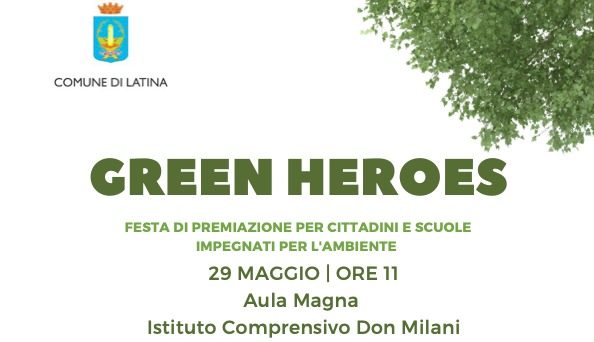Verra assegnato domenica 29 maggio il riconoscimento da parte del Comune di Latina ai cittadini e alle scuole che si sono particolarmente distinte nella tutela dell’ambiente e nell’impegno civico verso le tematiche green. L’iniziativa si chiamerà “Green Heroes”, riprendendo anche l’idea lanciata a livello nazionale dall’Associazione Kyoto Club nella promozione di buone pratiche verdi e prenderà inizio a partire dalle ore 11, nell’aula magna dell’Istituto Comprensivo Don Milani.