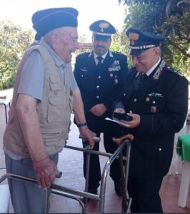 Nella circostanza il Ten. Col. Meola, Comandante del Reparto Operativo del Comando Provinciale di Latina ed il Cap. Angelo Sgueglia, Comandante del NORM del Reparto Territoriale di Aprilia, unitamente al Lgt. Raffaele Priore, Comandante della Stazione Carabinieri di Cisterna di Latina ed il Mar. Eduardo Cuomo in servizio alla citata Stazione, hanno inteso formulare al Ciavaglia gli auguri di buon compleanno da parte del Comandante Generale dell’Arma dei Carabinieri, Gen. CdA Teo Luzi, il quale ha voluto omaggiarlo di una sciabola in miniatura, elemento fondamentale dell’armamento dei Carabinieri Reali del 1814.