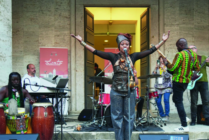 In foto, gli Itafrikband con Awa Koundoul (voce), Issa Diarra (chitarra), Papis Diarra (basso), Silvio Scena (tastiere), Marco Libanori e Matar Mbaye (percussioni)