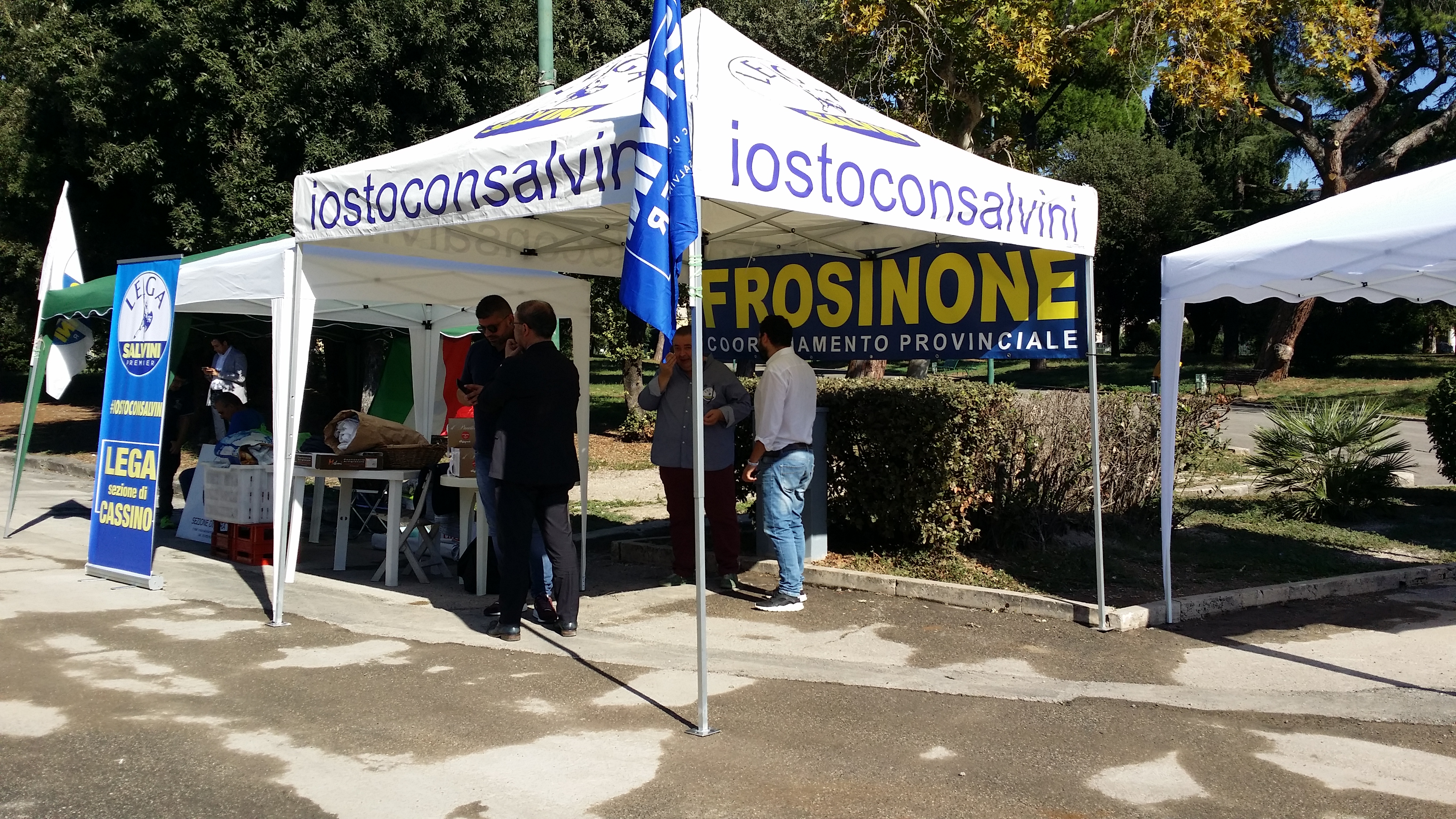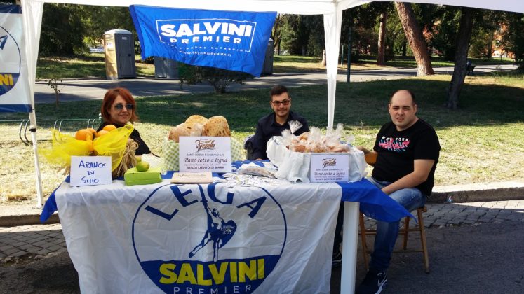 La parte centrale del parco pubblico si colora di “verde” con gli stand della Lega, ci sono quelli dei comuni della provincia di Latina, e delle altre province del Lazio con i gadget con su stampato il logo del partito, ma anche tanti prodotti gastronomici tipici di ogni località della regione. Pane, dolci e quanto altro distribuiti gratuitamente: “Qui non si vende niente”, dice un militante del gazebo di Cassino.