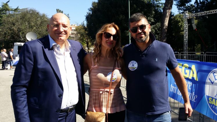 Matteo Adinolfi, coordinatore provinciale della Lega e consigliere comunale di Latina, è in trepidazione. E’ lui che si presta a fare gli onori di casa. Riceve e stringe la mano ai cronisti presenti per seguire l’evento, li indirizza allo stand per ritirare i pass. E poi non si lascia sfuggire i curiosi. La prima a cadere nella rete dell’intrattenitore leghista è Marina Aramini, vice presidente del consiglio comunale di Latina, esponente di Latina Bene Comune.