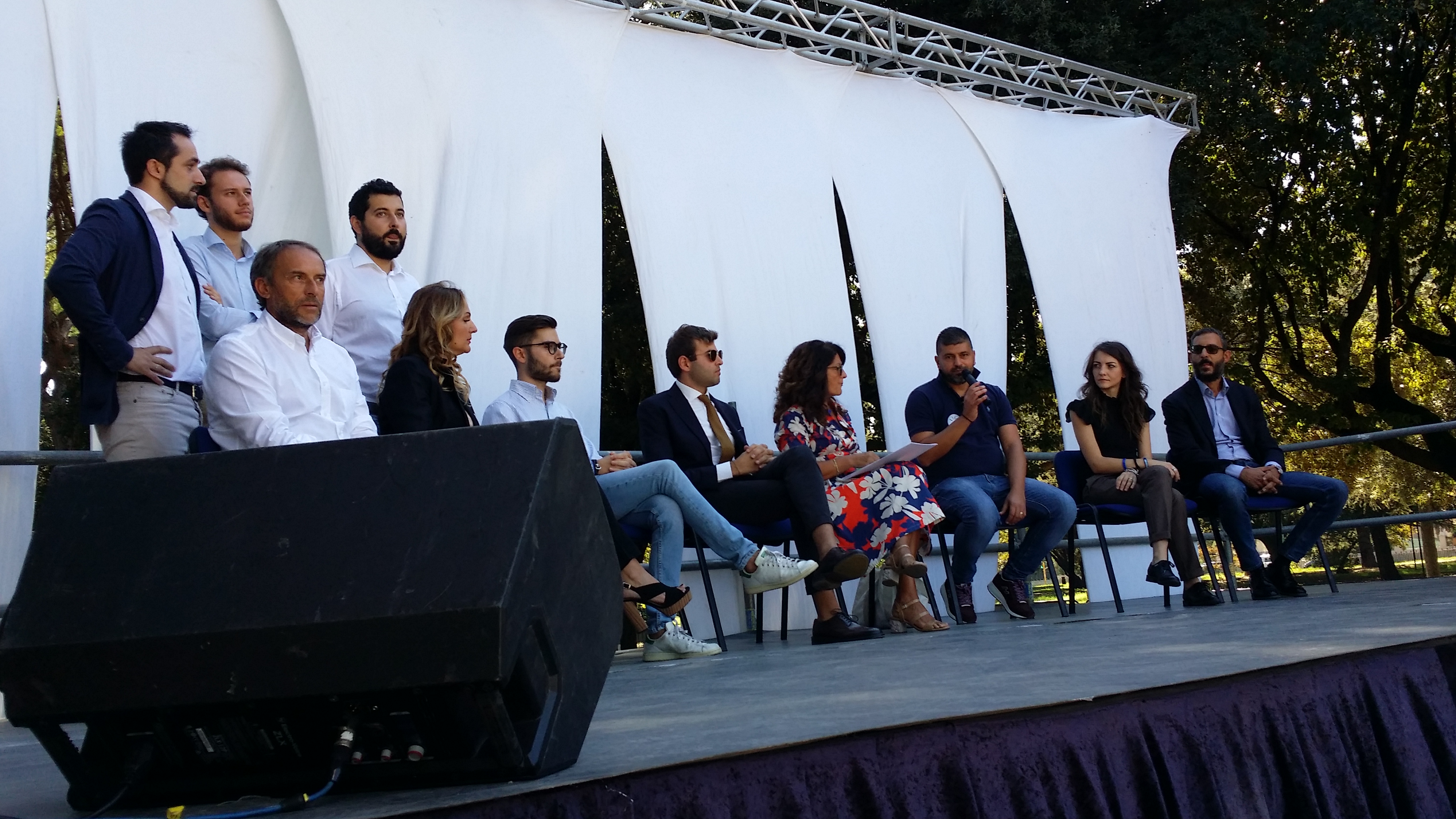 Ci sono ore di attesa e l’organizzazione punta alle tavole rotonde. La prima, “La nostra identità, più Lazio nella nuova Europa”, è andata in scena con circa un’ora di ritardo per problemi tecnici. I lavori per l’allestimento del palco sono in ritardo, segno di una festa genuina, fatta in casa, con l’aiuto dei militanti e le regole di sicurezza da rispettare.