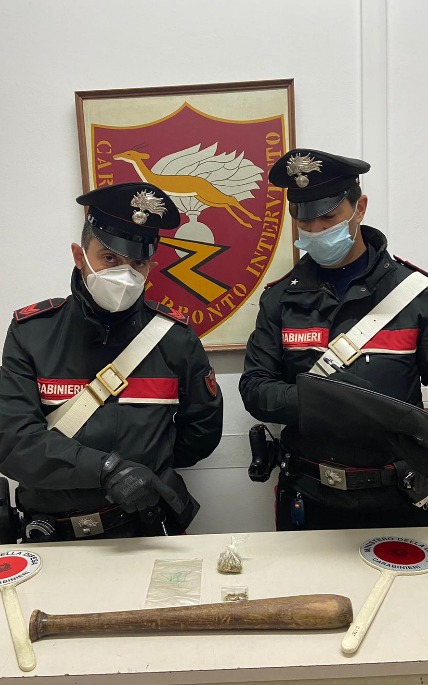 Per questo gli uomini dell’Arma hanno deciso di svolgere anche una perquisizione domiciliare e nell’abitazione del 42enne hanno trovato due bustine contenenti la stessa sostanza del peso di 4.30 grammi. Lo stupefacente e la mazza da baseball sono stati sequestrati e il 43enne è stato denunciato.
