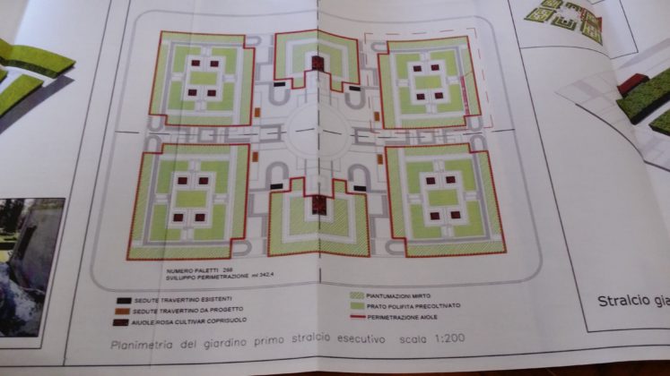 Il punto all’ordine del giorno era stato richiesto dal consigliere Matteo Coluzzi. A riferire sull’argomento è stato il funzionario comunale Raffaele Feliciello, molto esperto di botanica, attualmente in forza presso il servizio Qualità urbana e bellezza. Il progetto prevede la realizzazione di siepi alte una quarantina di centimetri grossomodo in luogo delle attuali aiuole verdi. A protezione delle siepi sarà installata una leggera staccionata in ferro, non più alta di mezzo metro, fino a quando i cespugli impiantati non avranno raggiunto l’altezza e consistenza indicata nel progetto. Previsto un tempo di tre anni, durante i quali il giardino potrà essere attraversato soltanto lungo la croce che incontra la fontana con la palla. Gli altri quadranti resteranno interdetti fino a quando non sarà rimossa la staccionata. Il funzionario Feliciello ha detto che comunque, per la piantumazione delle essenza saranno necessari una trentina di giorni. “Si tratta di un investimento importante, piante fitte già alte una ventina di centimetri”, ha spiegato Feliciello chiarendo anche che rispetto al progetto originale della piazza ci sono le siepi esterne che rappresentano una soluzione funzionale all’attraversamento della piazza.