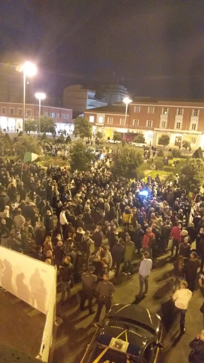 In piazza qualche centinaio di persone, tra cui molti commercianti ma anche frange dell’ultra destra pontina, con esponenti della tifoseria calcistica. Segnalati petardi e fumogeni. Ma soprattutto un forte assembramento e, da parte di alcuni, l’utilizzo non corretto della mascherina. I commercianti si sono dissociati dal comportamento del gruppo di facinorosi.
