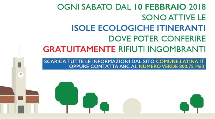 “Per ogni appuntamento – fanno sapere dal Comune – Abc metterà a disposizione il proprio personale che aiuterà i cittadini a posizionare i vari materiali dismessi in dei cassoni scarrabili. Questi verranno poi ritirati a fine giornata per essere trasportati presso la sede dell’Azienda, da dove, dopo un’ulteriore selezione, i rifiuti prenderanno la via definitiva del trattamento se riciclabili, o dello smaltimento presso le apposite strutture se non riciclabili. Si è deciso in tal senso per venire incontro alle utenze anche a causa del fatto che dei quattro Centri Comunali di Raccolta realizzati in passato, le cosiddette Isole Ecologiche, attualmente è funzionante solo quella di Via Bassianese (angolo Via dei Monti Lepini). Entro il prossimo mese di marzo è comunque previsto l’avvio del nuovo Centro di Raccolta di Via Massaro (zona Latina Lido), mentre per quelli di Via delle Congiunte Destre (Chiesuola) e di Latina Scalo sono in corso di definizione appositi finanziamenti da parte della Provincia di Latina e della Regione Lazio per il loro ripristino funzionale. Il calendario di raccolta degli ingombranti quindi verrà adeguato in futuro in base all’entrata in funzione di tali strutture. Si invita pertanto la cittadinanza ad usufruire di questo nuovo servizio rispettando i tipi di materiali conferibili e presentandosi all’appuntamento nei giorni e nei luoghi prescelti. I cittadini saranno sistematicamente informati sia con appositi manifesti che verranno affissi su tutto il territorio comunale, sia con ulteriore materiale divulgativo (volantini e locandine) che verrà distribuito di volta in volta nelle zone interessate nei giorni antecedenti agli appuntamenti”.
