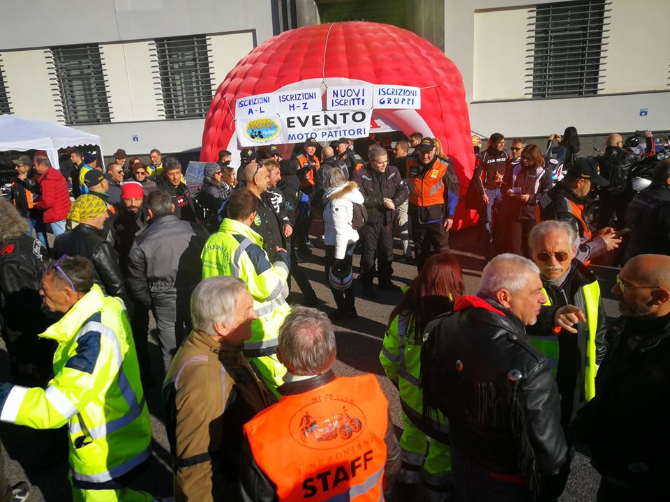 La Befana al motoraduno porta due motoseghe per i volontari del gruppo di Protezione civile Passo Genovese.