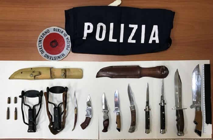 Questa volta, però, durante la perquisizione domiciliare presso l’abitazione dell’uomo, sono stati trovati e sequestrati numerosi coltelli da caccia ed a serramanico, due fionde e varie cartucce, alcune delle quali classificate come munizionamento da guerra. Proprio per queste ultime è stato arrestato e posto ai domiciliare.