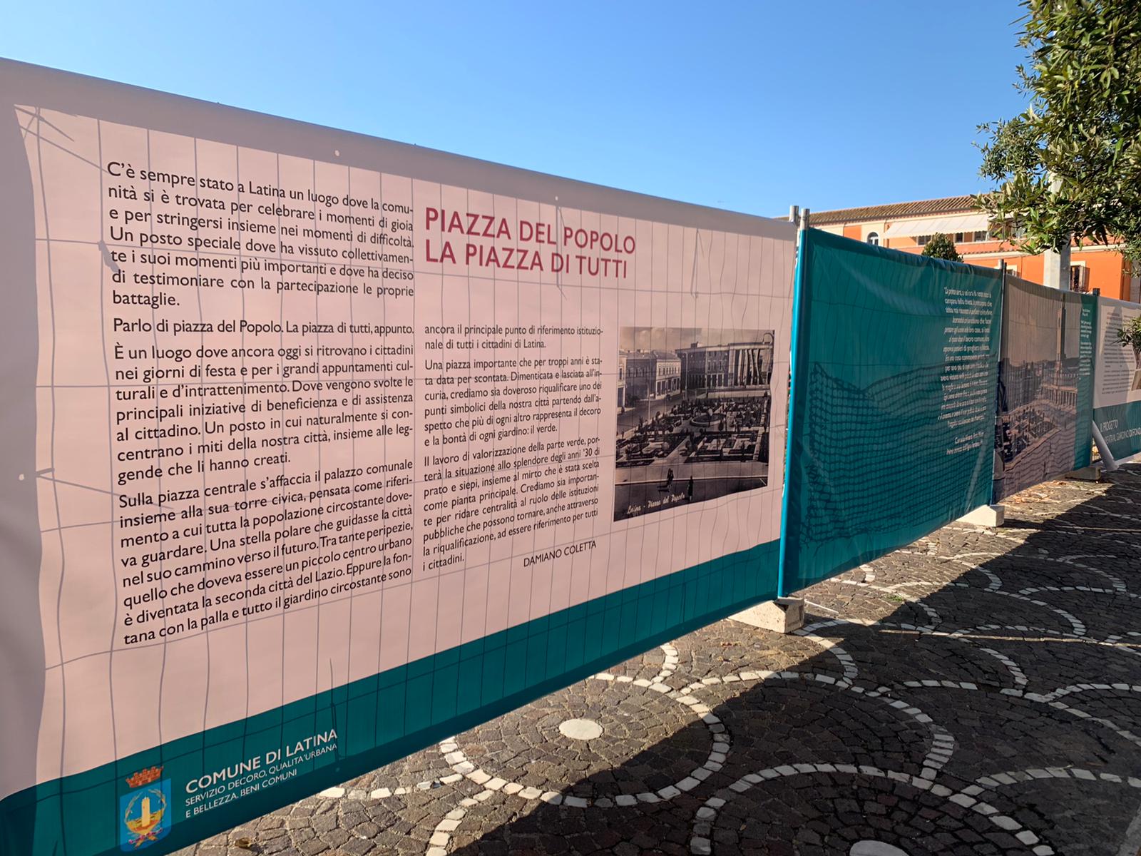 In uno di questi pannelli è il sindaco Damiano Coletta a spiegare il valore della piazza di tutti (segue foto).