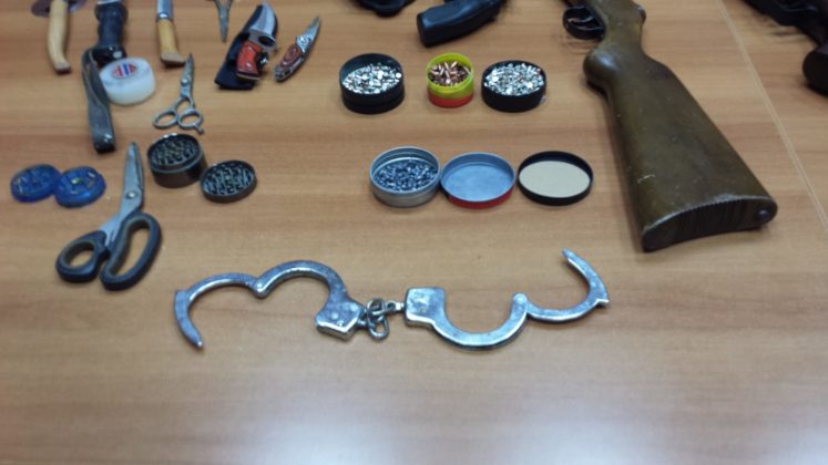 Durante la perquisizione sono state rinvenute e poste sotto sequestro, al pari della droga, armi e munizioni: tre carabine ad aria compressa, un fucile softair privo di tappo rosso, una pistola, 250 cartucce, cinque coltelli di genere proibito. Trovate e sequestrate anche un paio di manette sulle quale sono in corso accertamenti per verificare se appartenenti a quelle in uso alle forze dell’ordine.