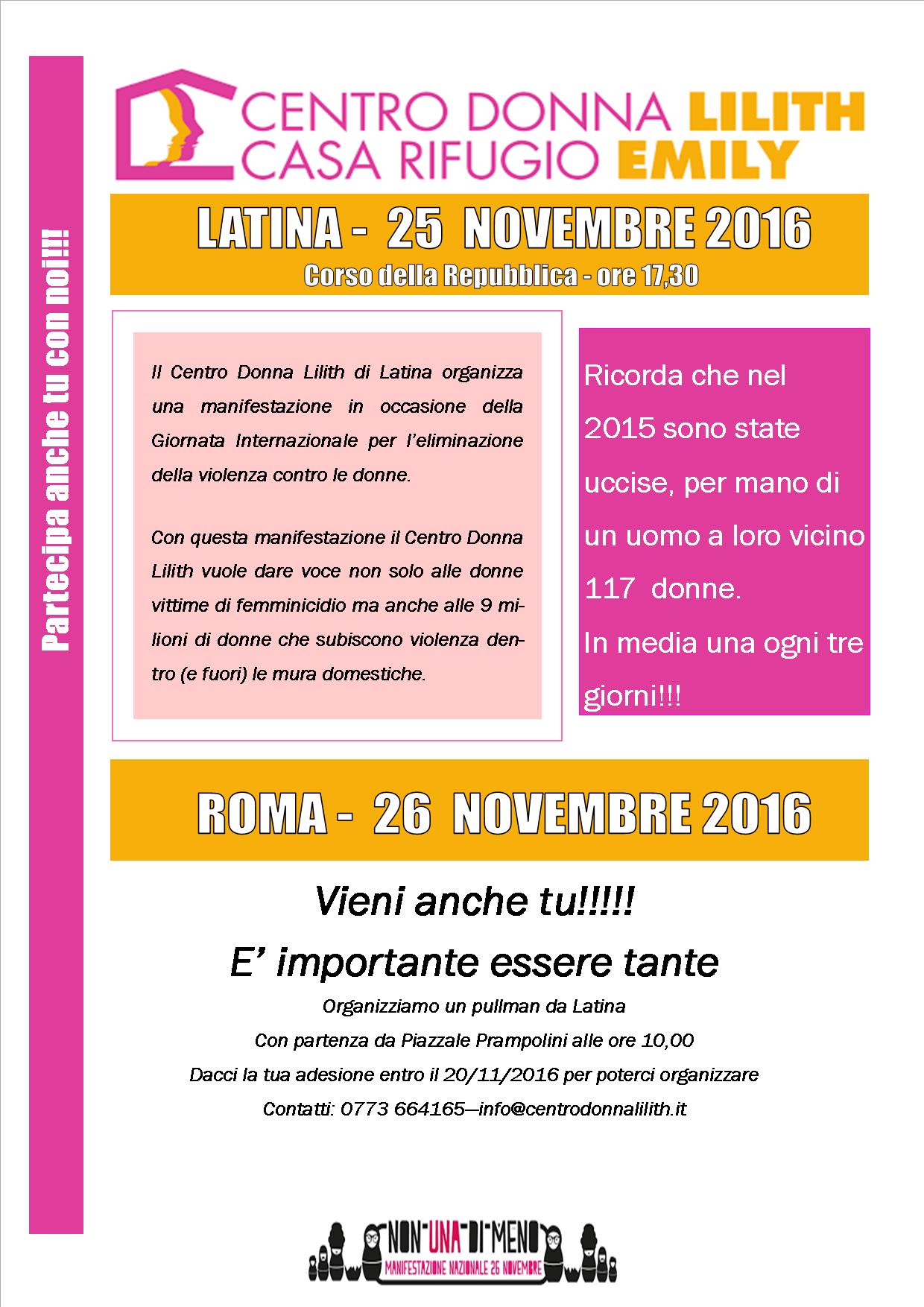 Con lo slogan “Vieni anche tu!!!!! È importante essere tante”. Il centro donna Lilith ha organizzato un pullman da Latina con partenza da Piazzale Prampolini.