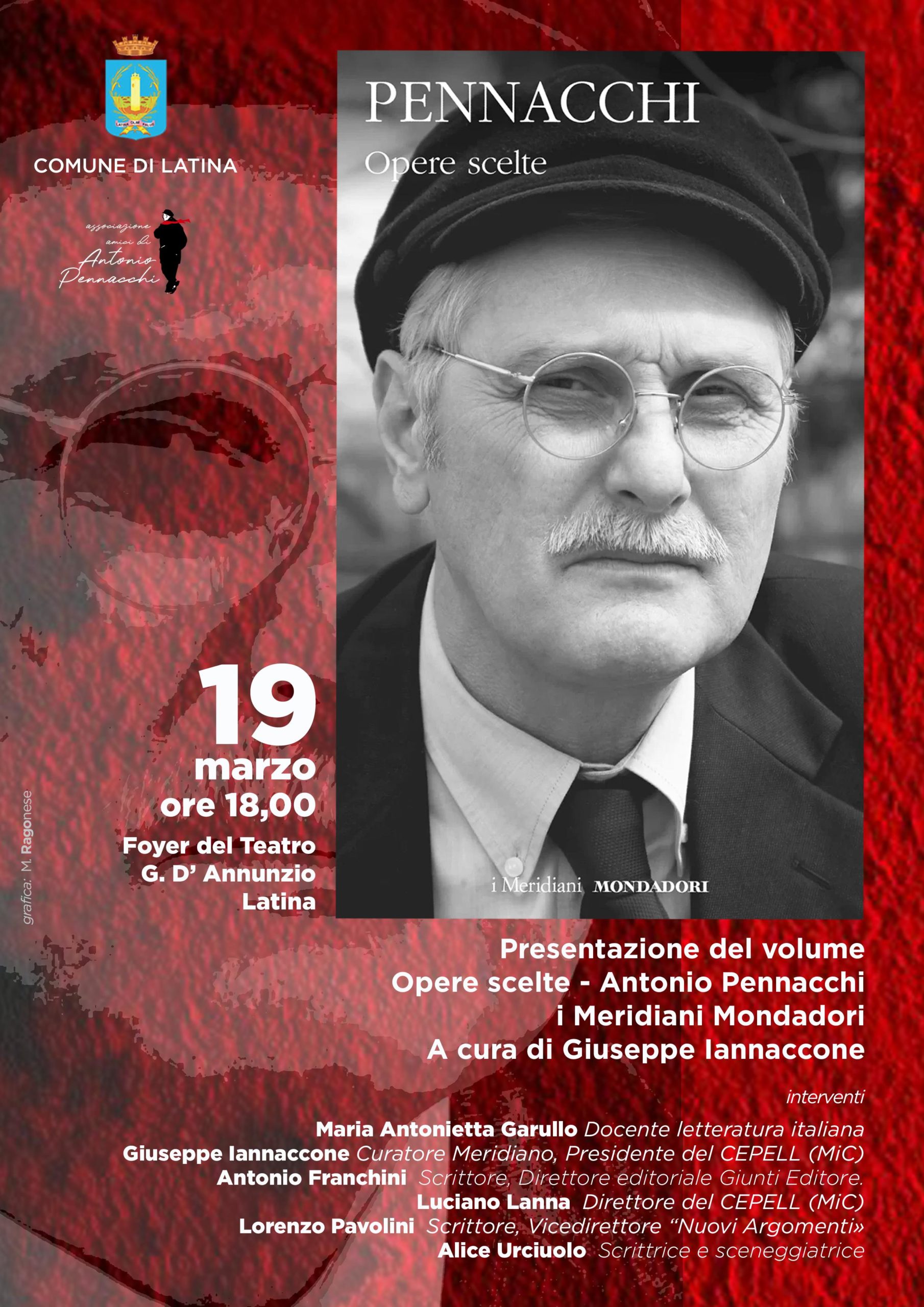 Un appuntamento di grande rilievo culturale per la città e per l’intero panorama letterario italiano. Giovedì 19 marzo 2026, alle ore 18, il Foyer del Teatro comunale Gabriele D’Annunzio ospiterà la prima presentazione del volume Opere scelte di Antonio Pennacchi, pubblicato nella prestigiosa collana “I Meridiani” di Mondadori e curato da Giuseppe Iannaccone.