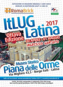 Si svolge a Latina, domenica 30 aprile e lunedì 1° maggio, presso il museo storico Piana delle Orme, a Borgo Faiti, l’ottava edizione di LtLug 2017, curata da Roma Brick, interamente dedicata all’esposizione dei famosi e inimitabili mattoncini della Lego. Aree gioco e sale espositive saranno riservate alle fantasiose costruzioni, che da sempre attirano l’attenzione dei più piccoli con la complicità dei genitori e dei nonni. La mostra ad ingresso libero, si propone di offrire al pubblico di questa nuova edizione le nuove proposte e soprattutto le tante idee pensate per entusiasmare e accendere la fantasia nell’intento di costruire qualcosa di veramente originale in grado di stupire ancora una volta gli appassionati di questo antico gioco.la locandina
