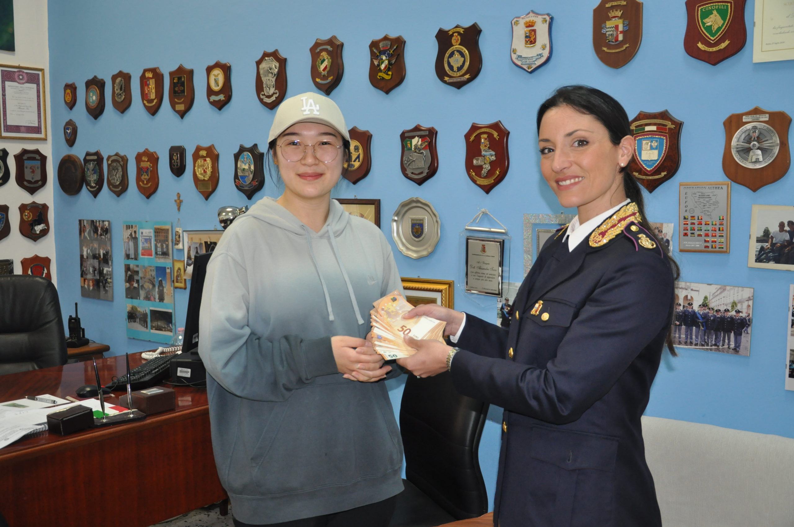 La Polizia ha restituito, ad una giovane studentessa cinese, portafogli contenente denaro contante, ritrovato da un cittadino italiano.