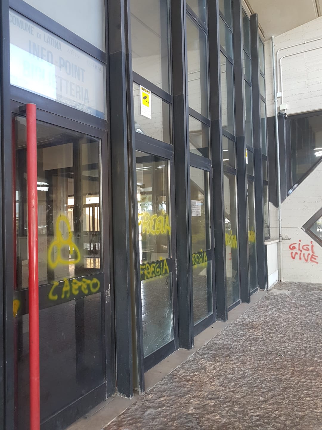 Brutta sorpresa questa mattina a Latina nella sede comunale limitrofa alle autolinee di via Romagnoli. Vandali in azione nella notte hanno devastato gli ingressi con vernice spray.