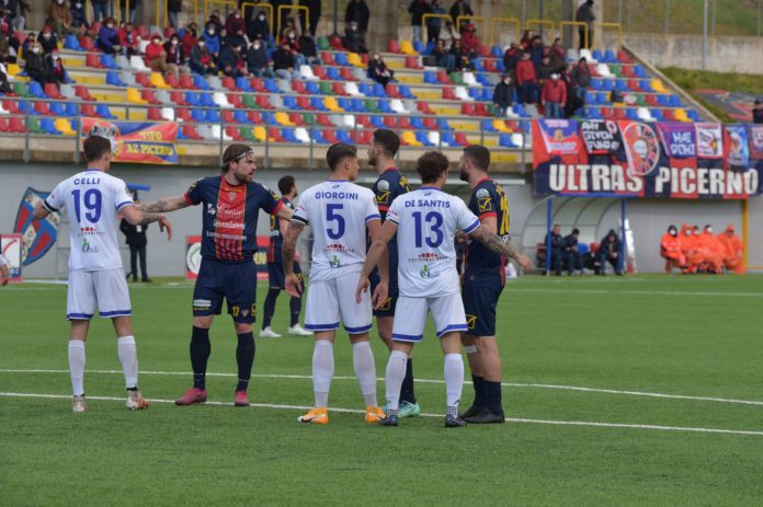 AZ Picerno (4-2-3-1): Viscovo, Finizio (32’ st Di Dio), Pitarresi, Allegretto, Esposito (32’ st Vivacqua), Dettori, Gerardi (13 st Parigi), Reginaldo (13’ st D’Angelo), Guerra, De Franco, Carrà (13’ st De Cristofaro). A disposizione: Albertazzi, Vanacore, Ferrari, Garcia, De Ciancio, Viviani, Setola. Allenatore: Colucci.
