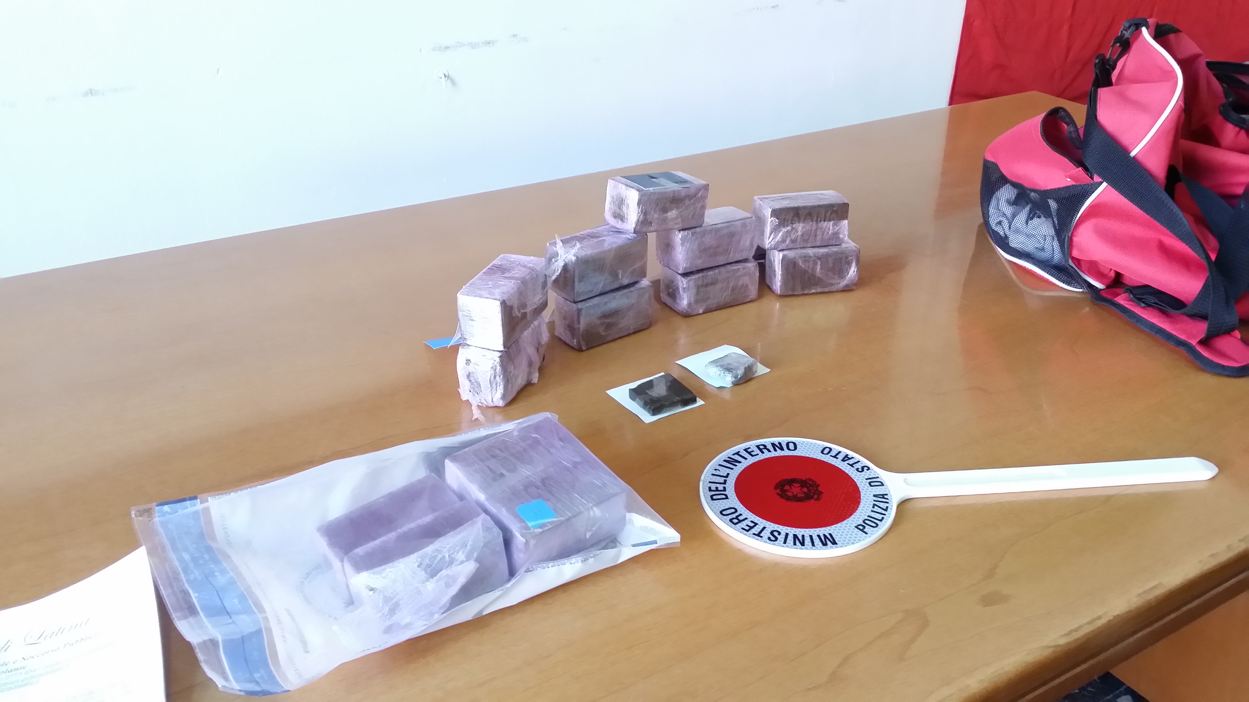 Una brillante operazione della Squadra Volante di Latina ha consentito oggi il sequestro di tre chili e 600 grammi di hashish: tre gli arresti. A finire in carcere due uomini marocchini e una donna albanese, regolarmente presenti in Italia, incensurati, domiciliati a Latina e tutti e tre con un lavoro regolare. Tre perfetti insospettabili, un muratore dipendente di una ditta edile del posto, un pizzaiolo e una cameriera di un ristorante di Latina, incappati nel servizio di controllo straordinario disposto dalla Questura nella zona delle autolinee. I dettagli dell’operazione sono stati forniti nel corso di una conferenza stampa, alla presenza del dirigente della Squadra Volante, il vice questore aggiunto Manuela Iaione, e del personale del terzo nucleo e della polizia giudiziaria della squadra.