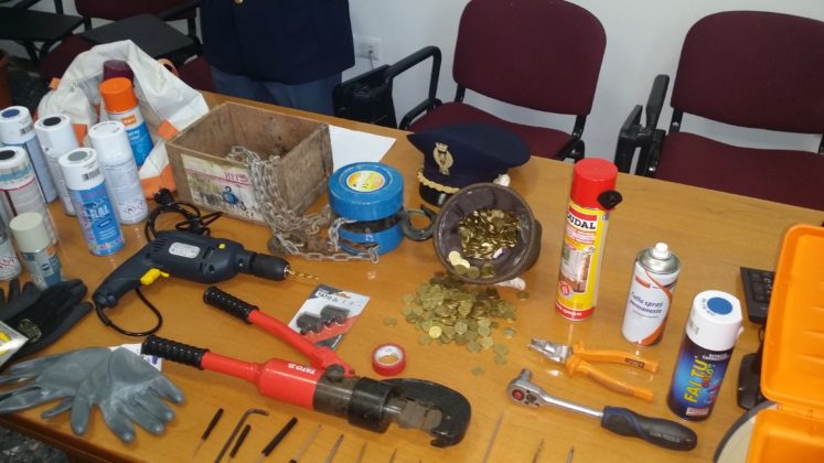 Nel corso delle perquisizioni sono state trovate un sacchetto di monete, ritenute provento di una delle ripulisti delle slot machine, bombolette spray e silicone, verosimilmente utilizzate per oscurare i sistemi di video-sorveglianza e per manomettere gli antifurto dei negozi presi di mira, una tronchesi a pressione recentemente acquistata in un ferramenta di Latina in cui i sospettati pedinati dalla Polizia si erano recati e numerosi altri attrezzi da scasso, compreso un paranco a catena utile per sollevare slot machine o casseforti.