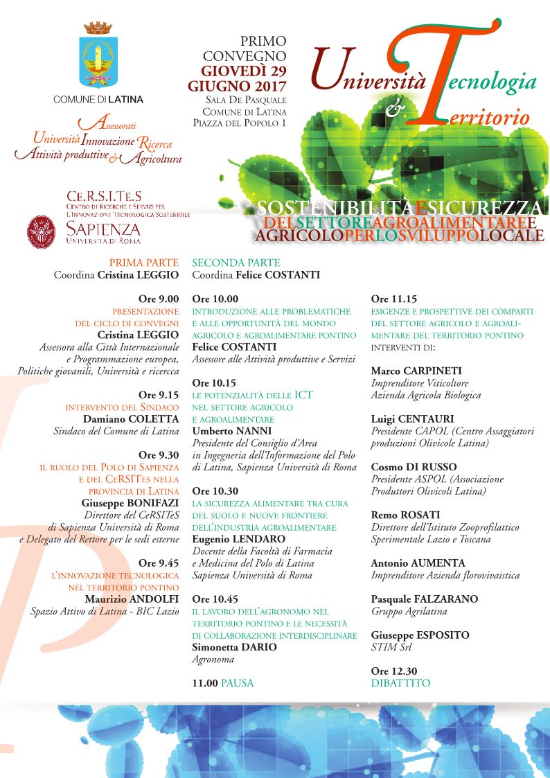 Si apre con il convegno di giovedì 29 giugno, presso il Comune di Latina, il ciclo di incontri “Università, tecnologia e territorio”, promosso dall’amministrazione comunale pontina con il Cersites de La Sapienza, sede di Latina.