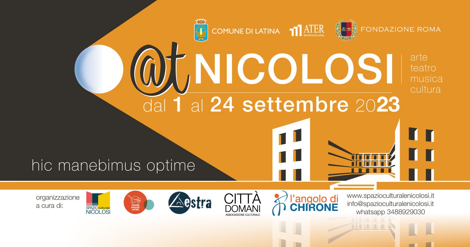 Ritorna “@tNicolosi”, la rassegna organizzata presso lo storico quartiere Nicolosi a Latina che, per il secondo anno, propone un cartellone di musica, arte, danza contemporanea, teatro di prosa e teatro di strada oltre ad una particolare attenzione a proposte dedicate ai bambini.